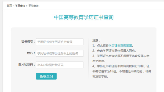 进入学信网后,在首页的学籍学历信息查询与认证服务→学历查询栏目中,点击“零散查询”,在跳转页面在跳转页面输入证书编号、姓名及验证码进行查询。