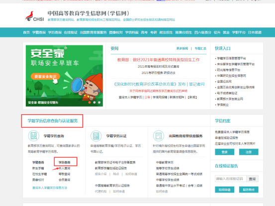 第一步:通过浏览器登录学信网,网址为:https://www.chsi.com.cn/(点击进入)