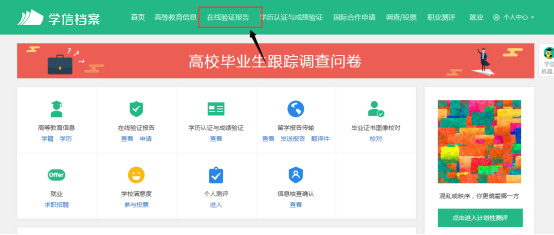 第二步:成功登录后,点击顶部菜单中的“在线验证报告”栏目;