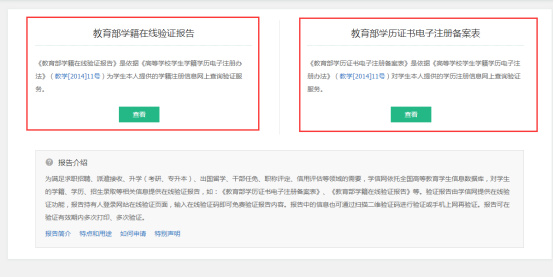 第三步:进行《教育部学籍在线验证报告》或《教育部学历证书电子注册备案表》的申请。