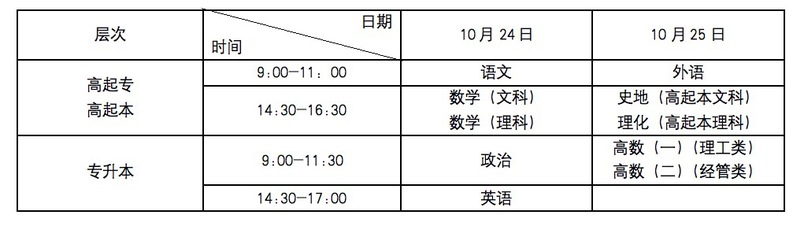 三、成人高校招生统一考试时间