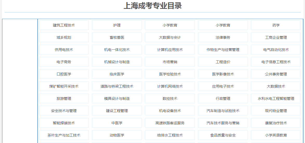上海成考专业有哪些?成人高考是成人教育方式之一,其学历是非全日制学历,但一样是国家承认学历,学信网可查,其享受待遇和全日制学历是等同的。下面小编为大家解答一下关于成人高考相关信息,希望对大家有所帮助!
