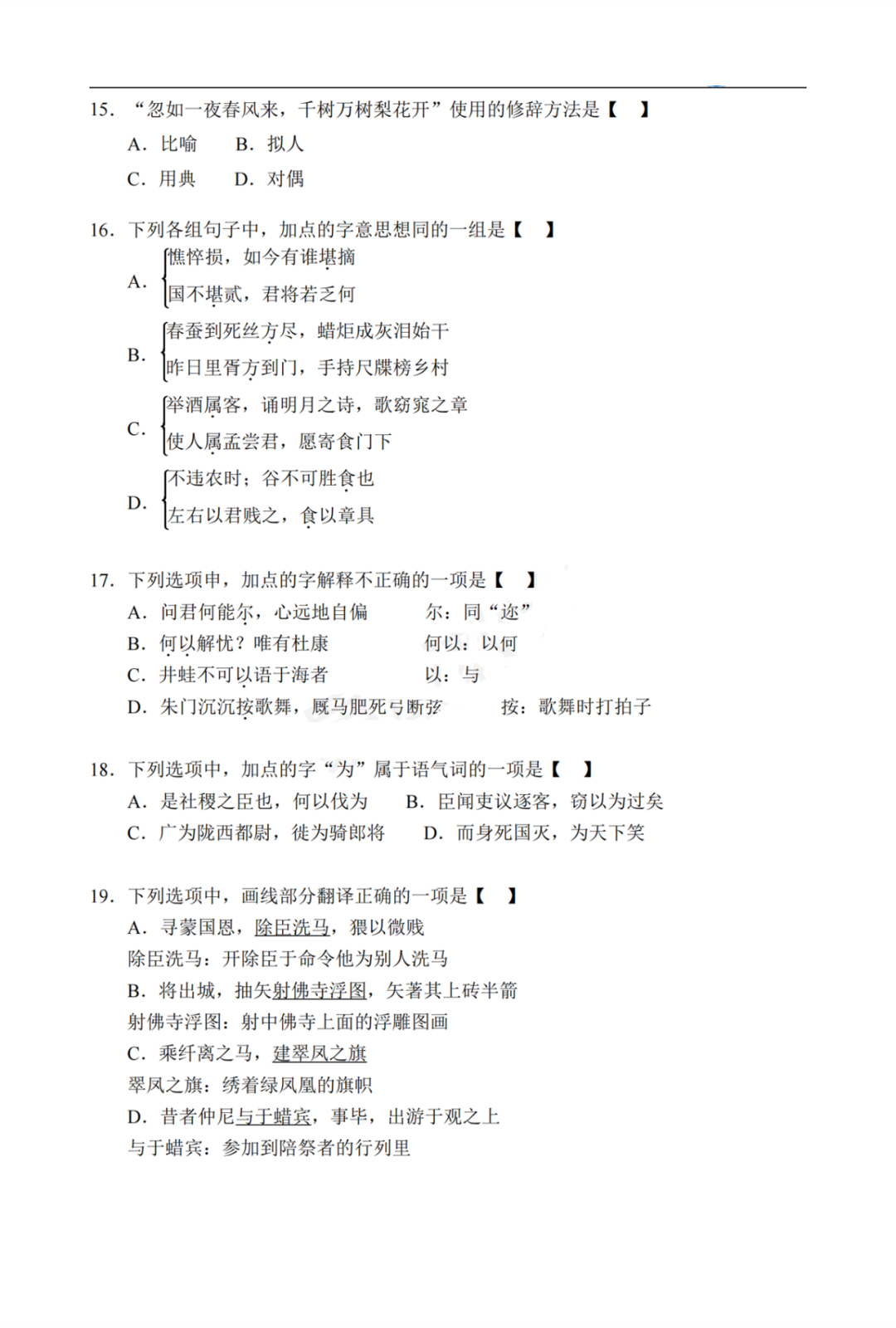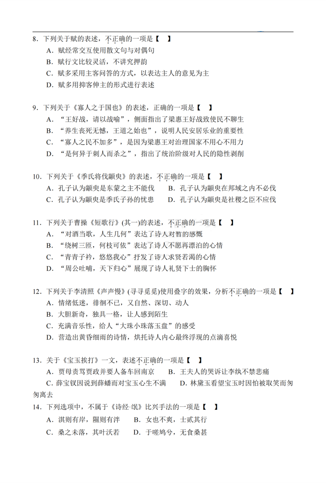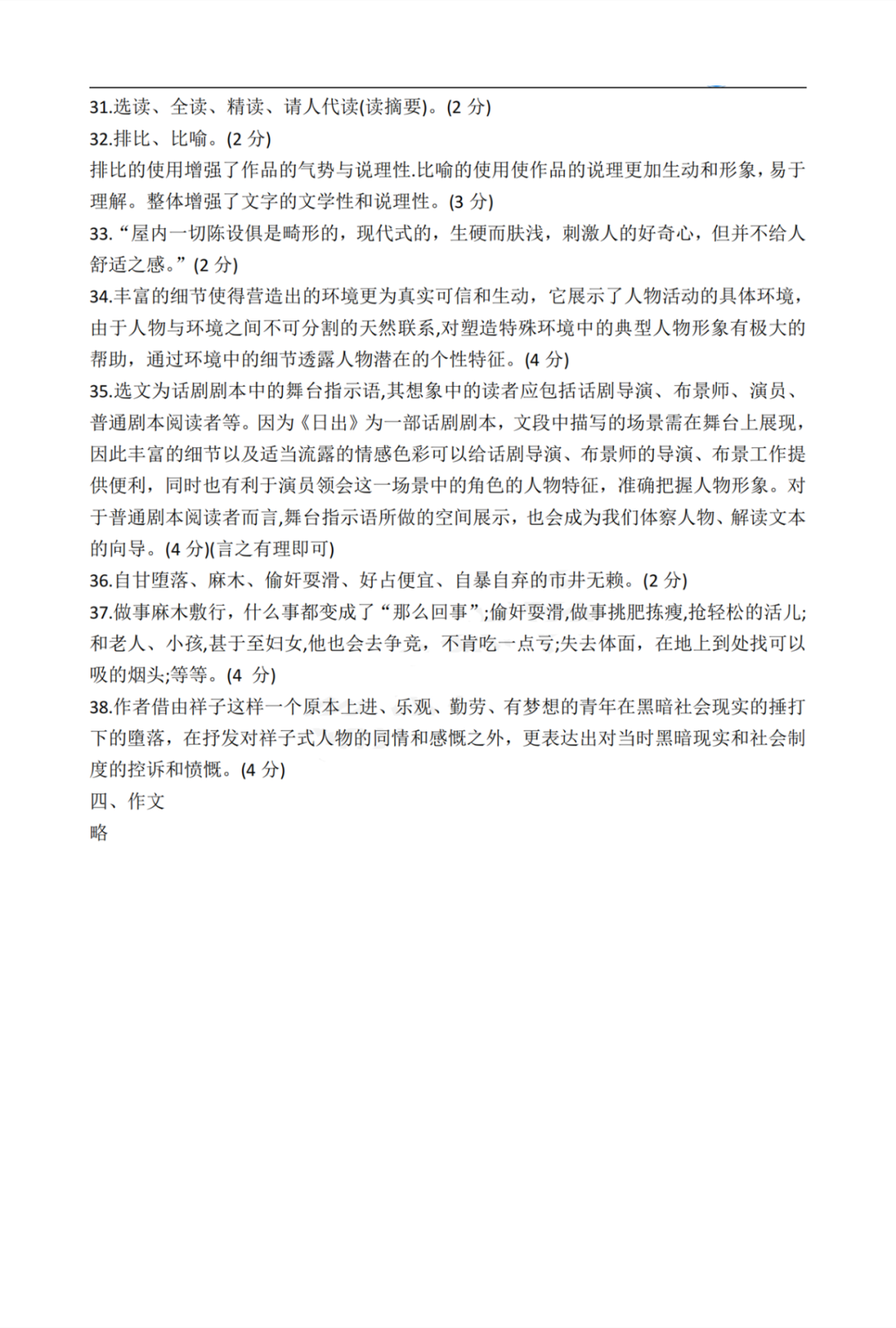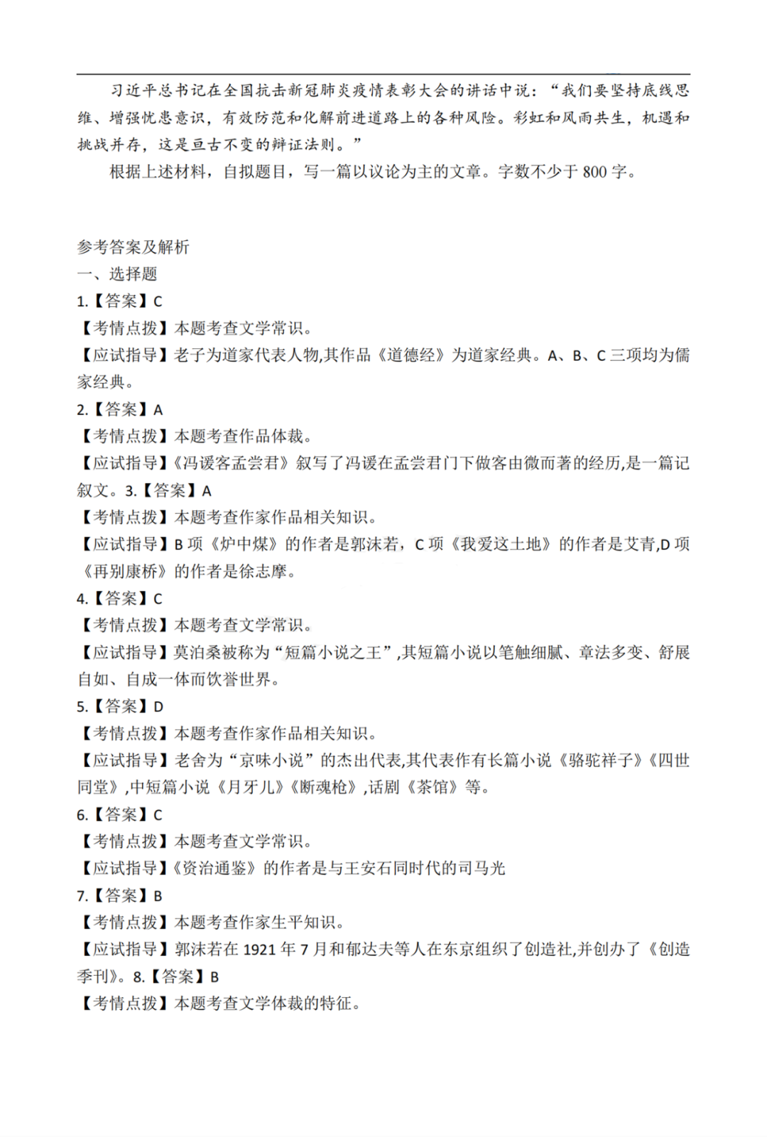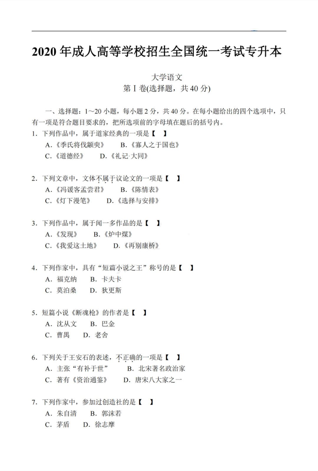 2020年上海成人高考专升本《大学语文》真题及答案解析详解