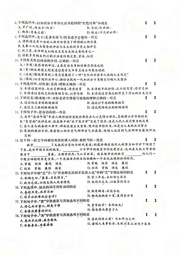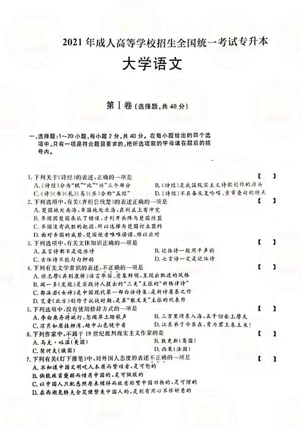 2021年上海成人高考专升本《大学语文》考试真题及答案解析