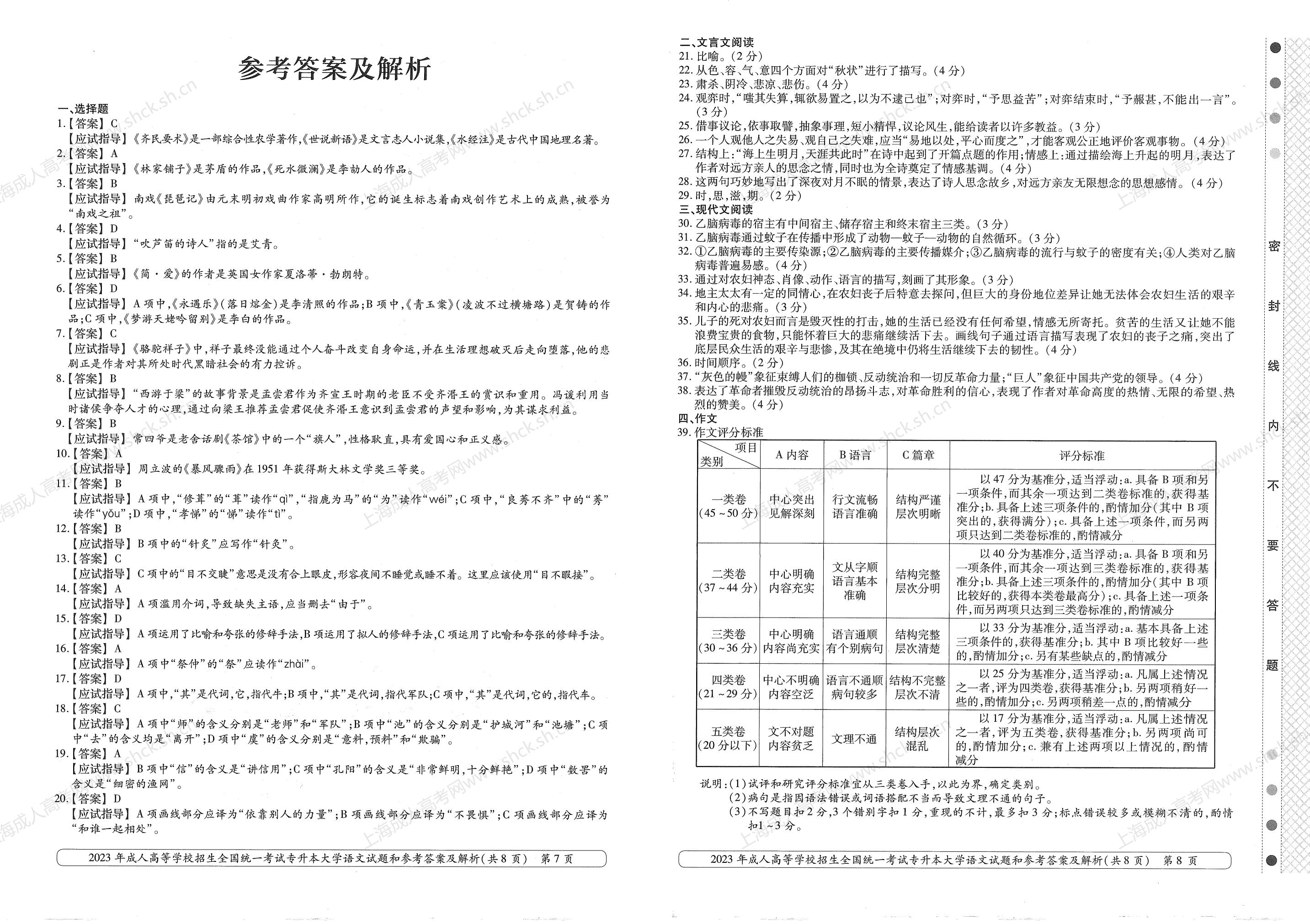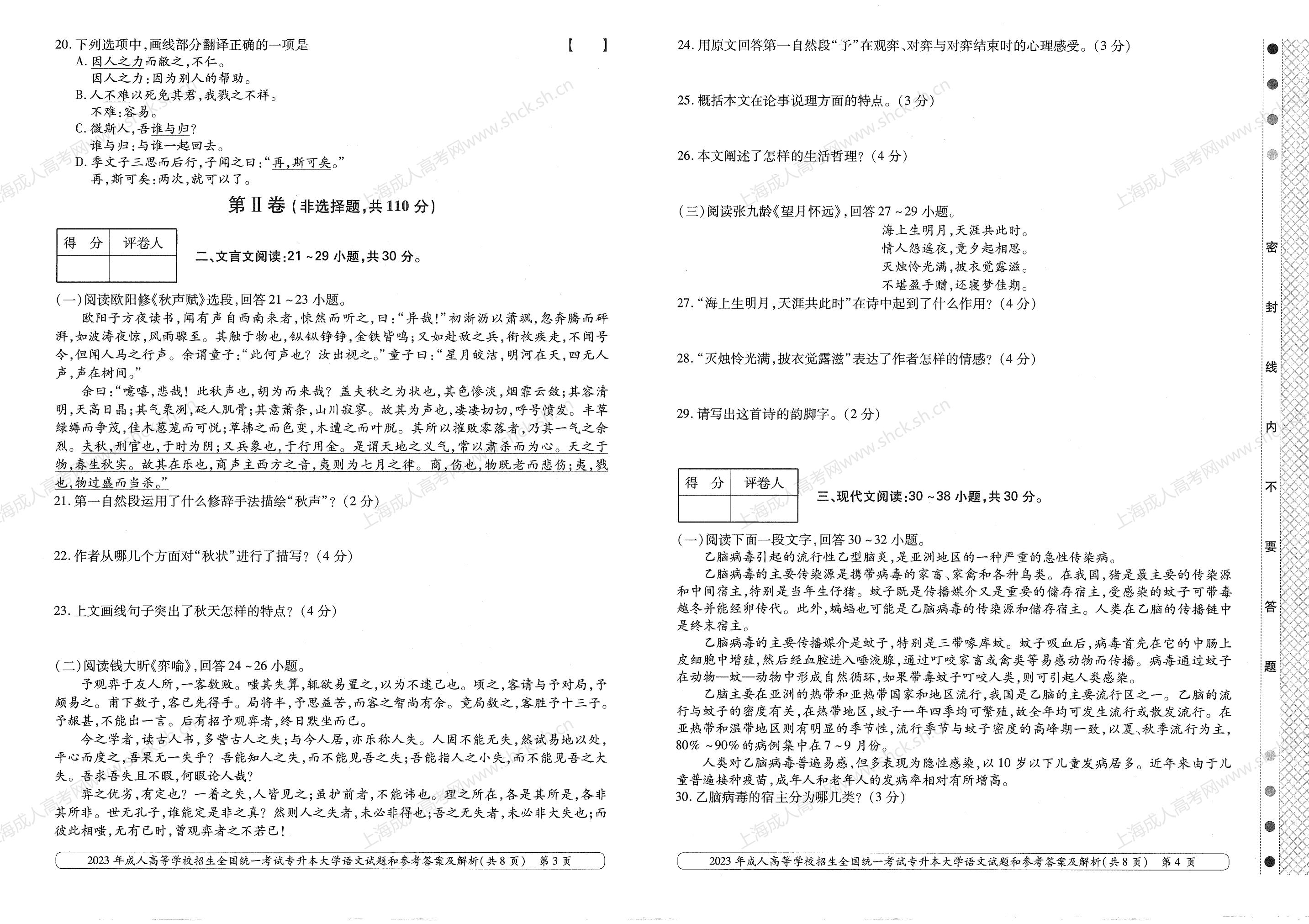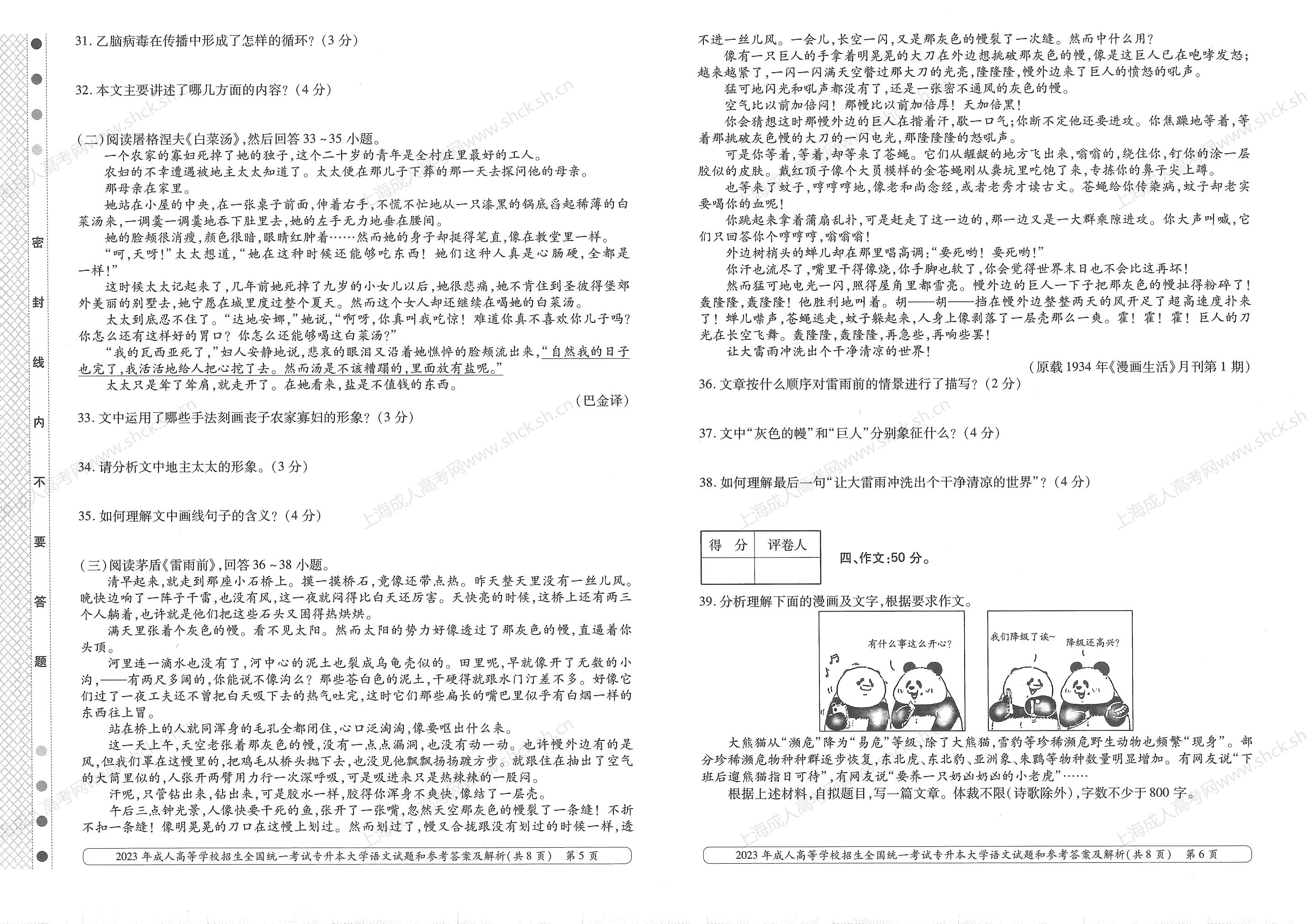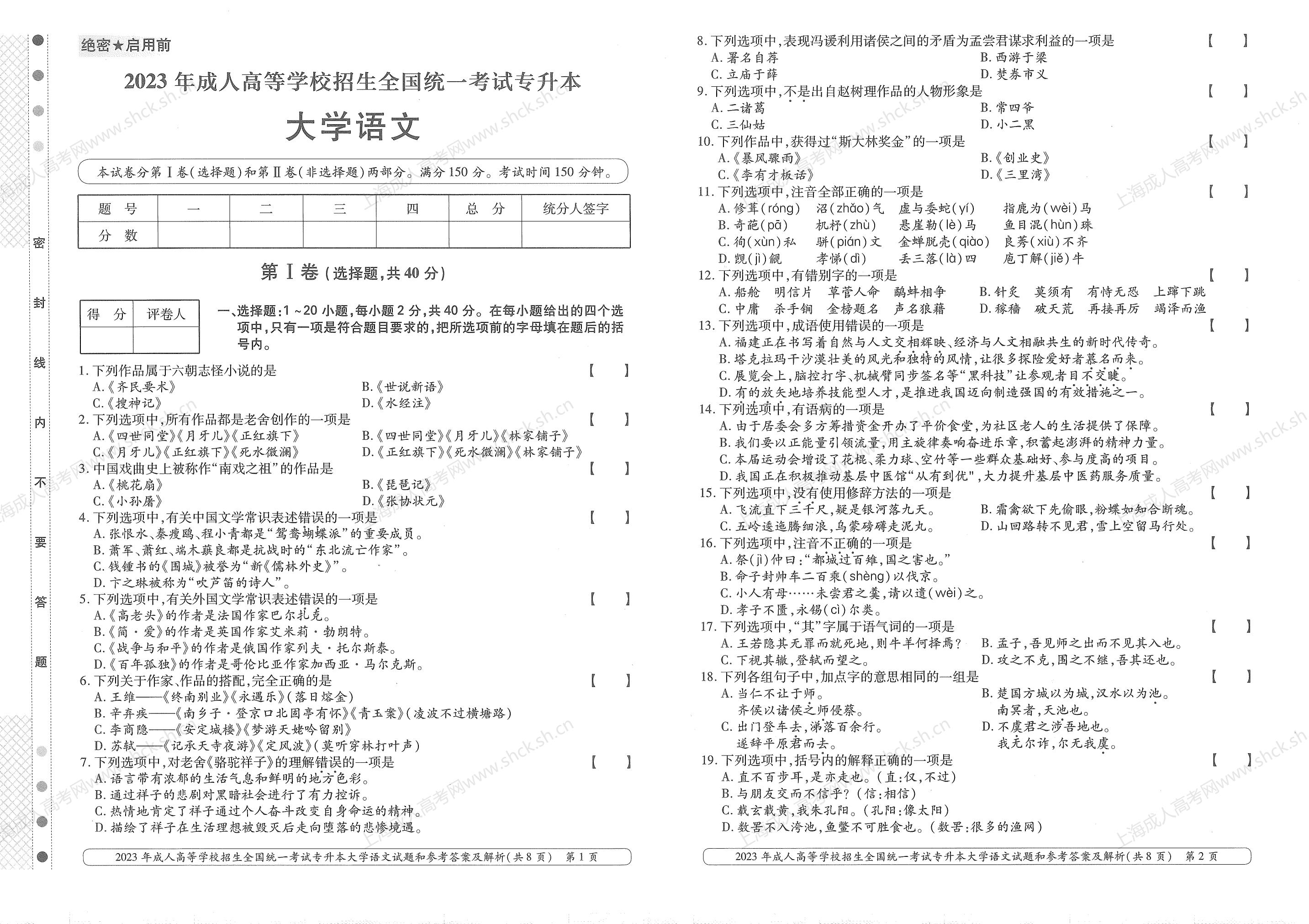 2023年上海成人高考专升本考试科目《大学语文》真题