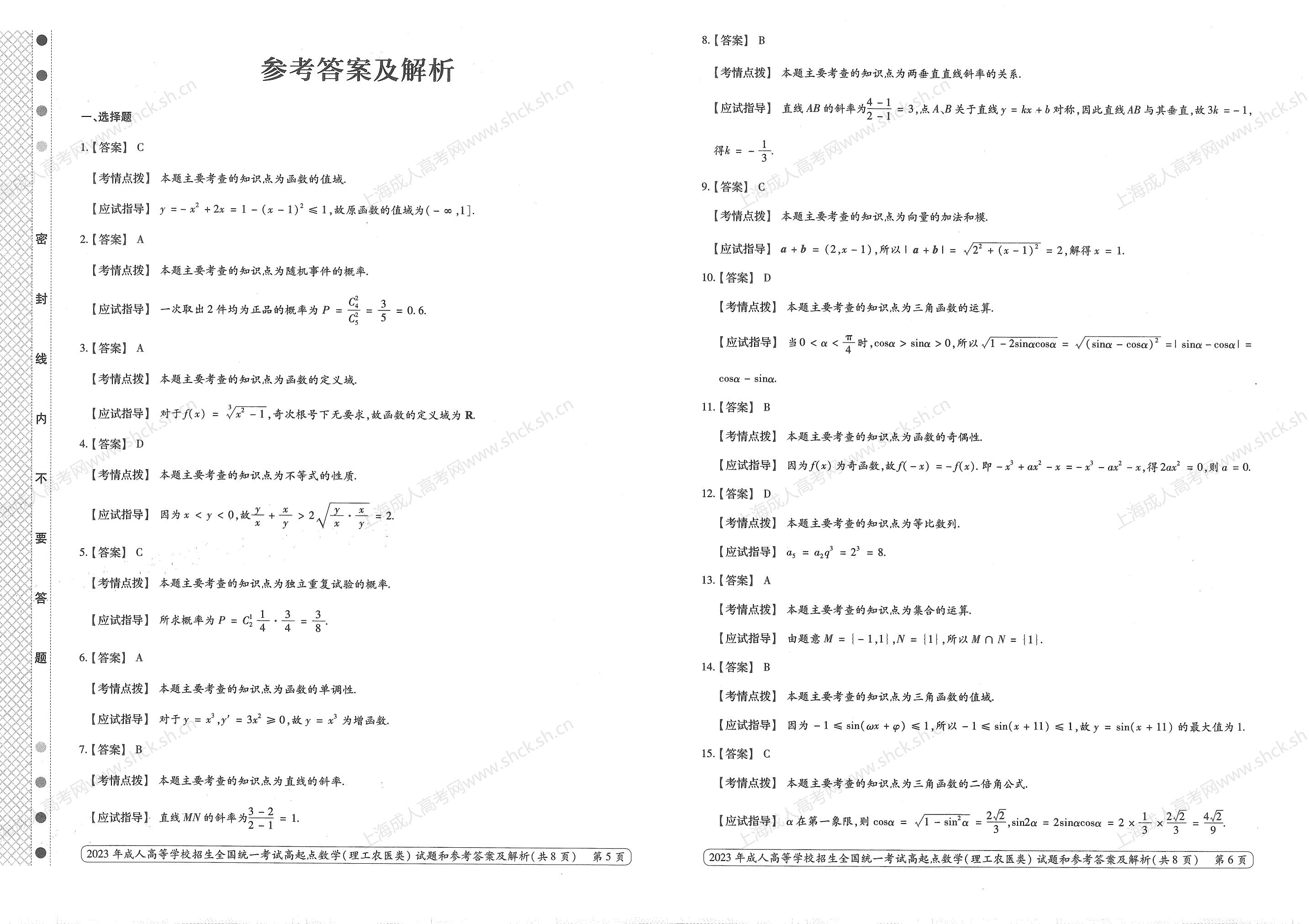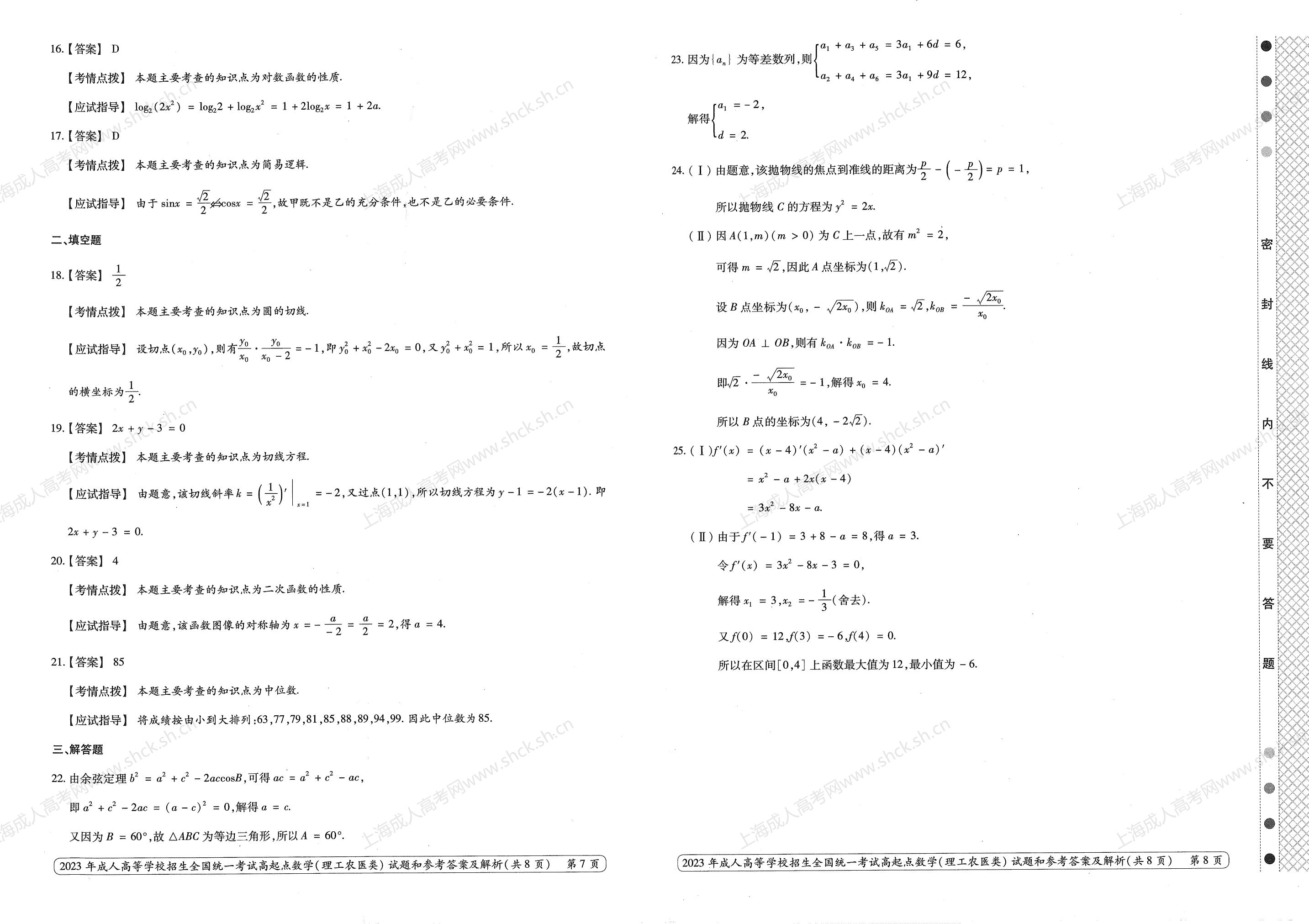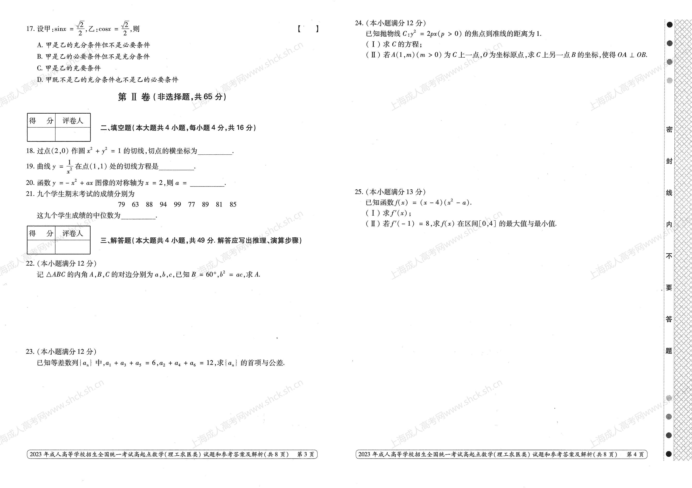本文标签:上海成考 理数 2023年上海成人高考高升专考试科目《数学(理科)》真题