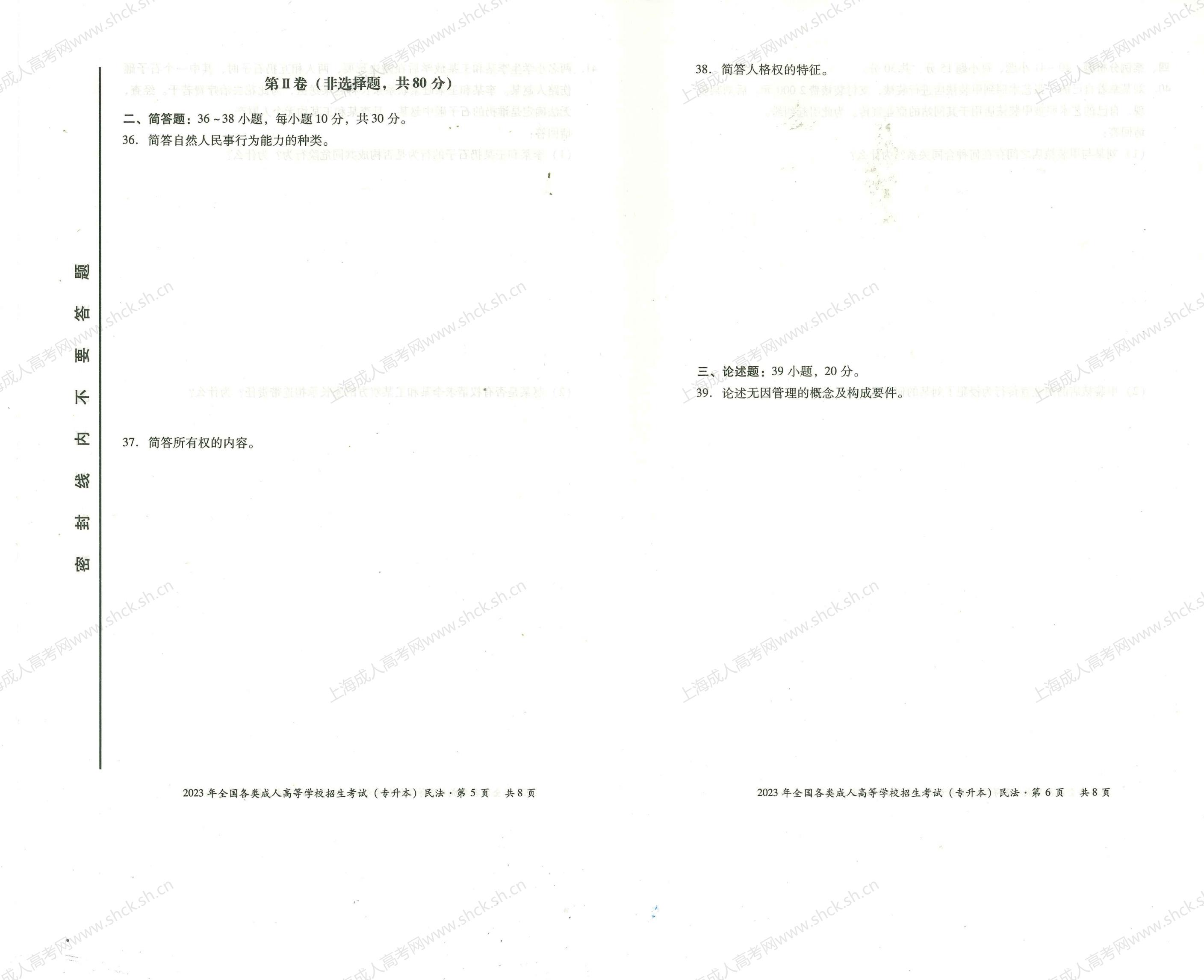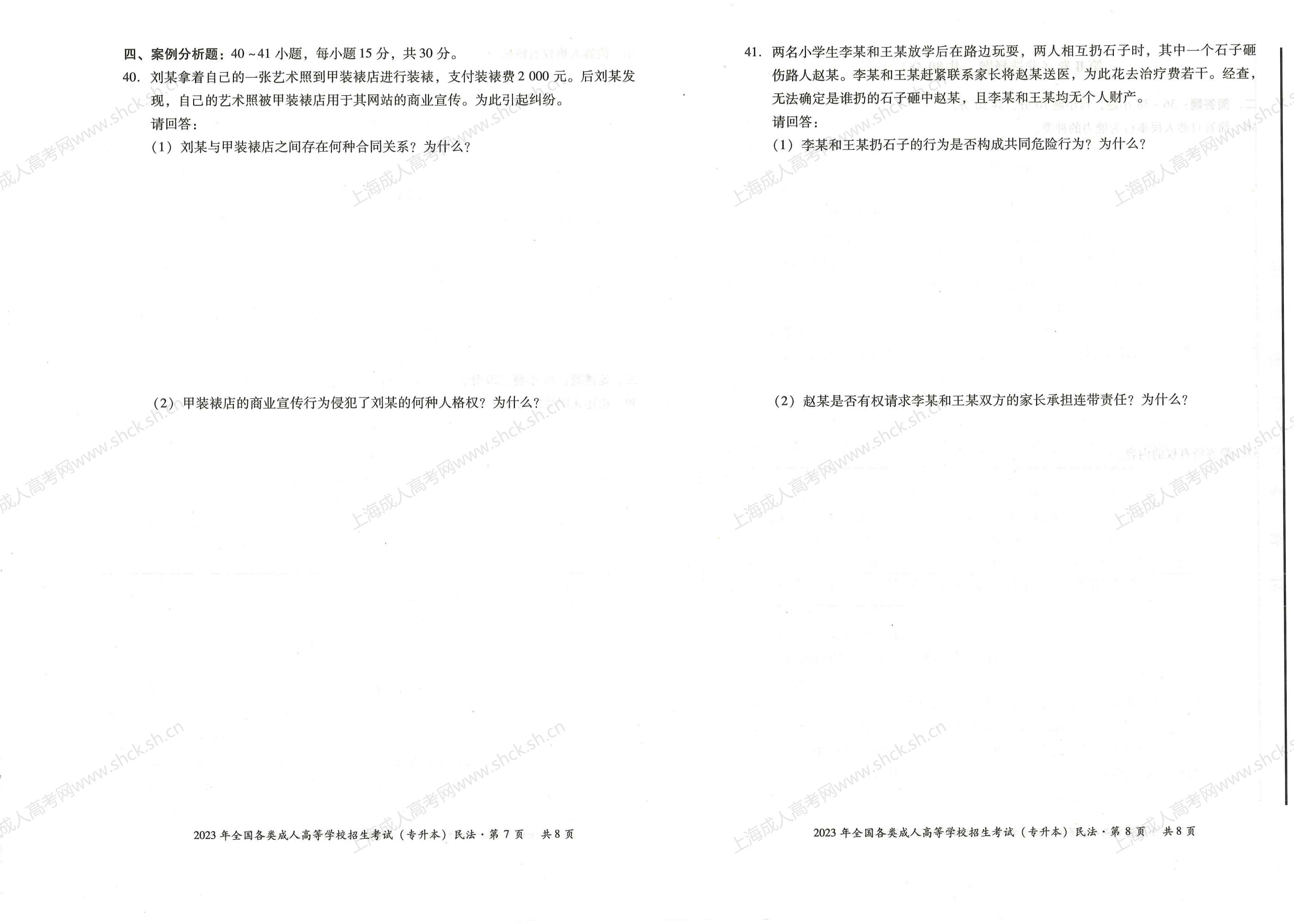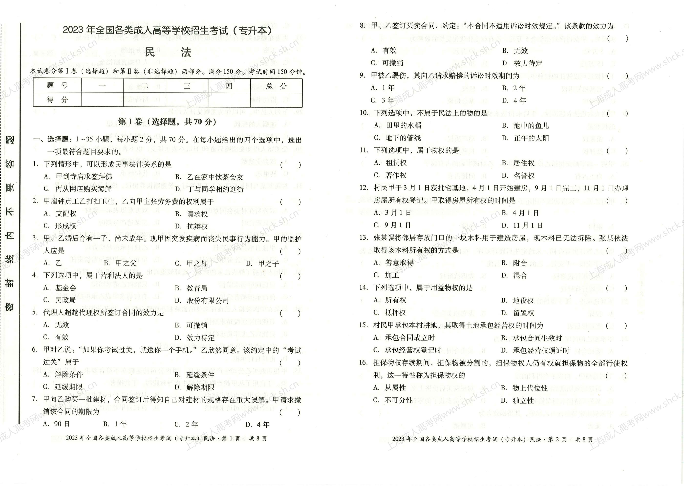 本文标签:上海成考 民法 2023年上海成人高考专升本考试科目《民法》真题