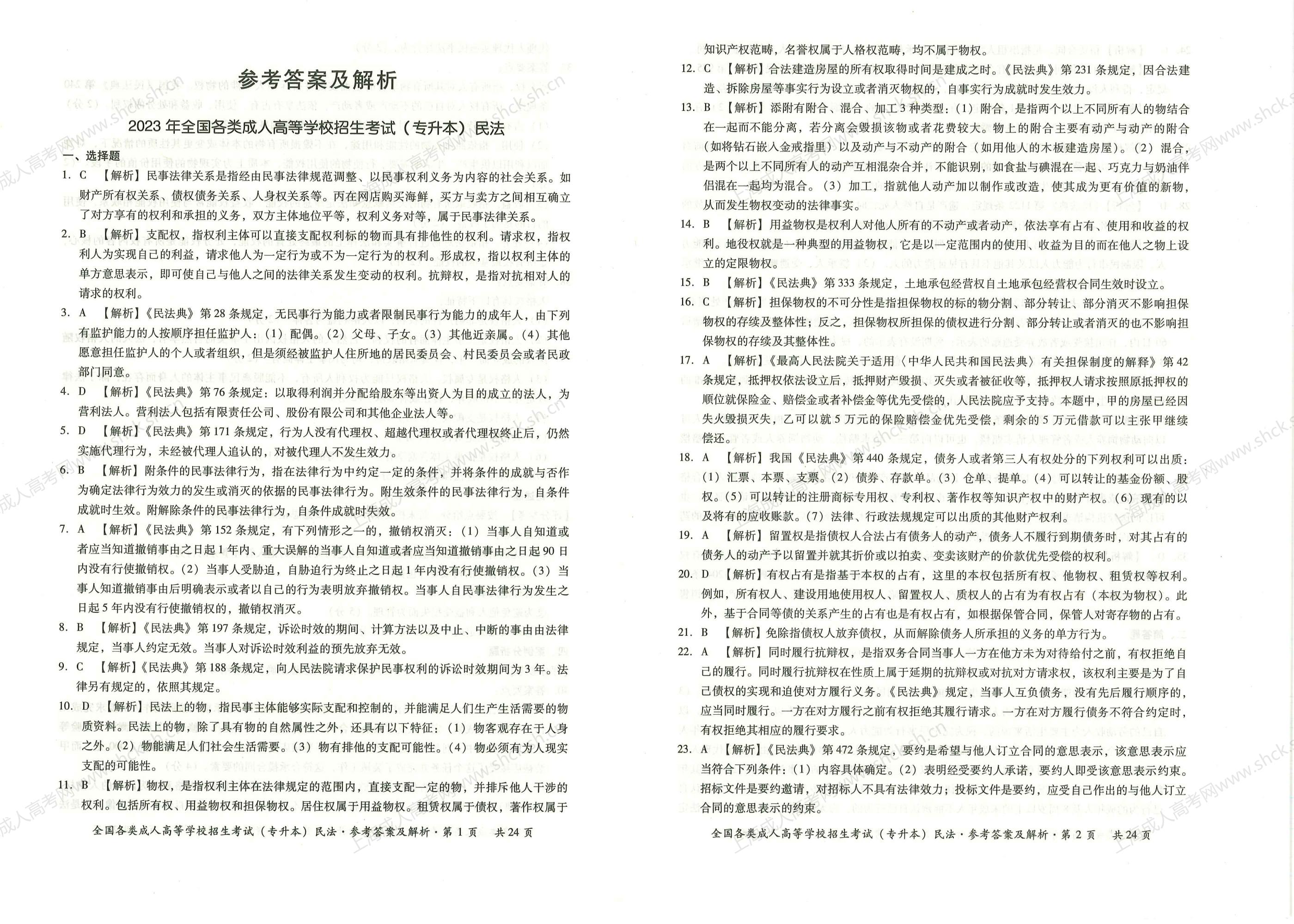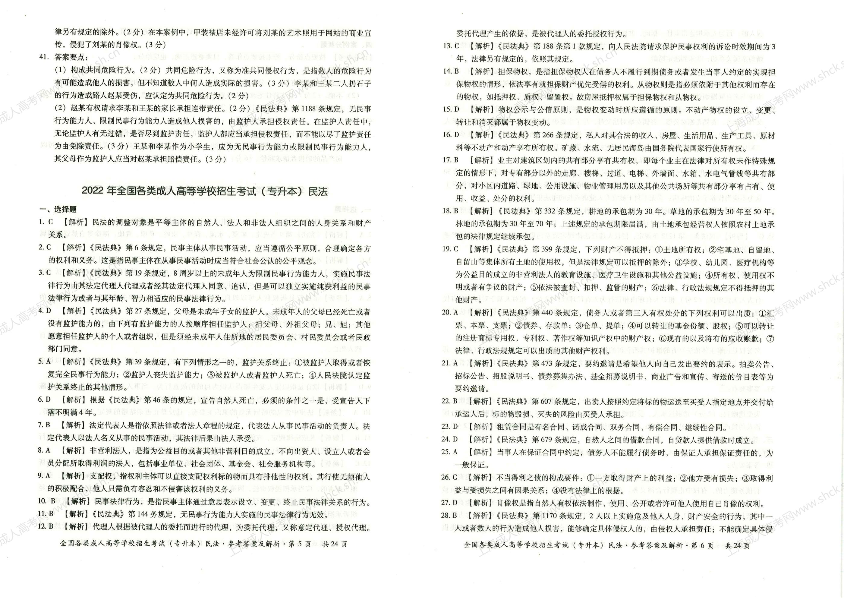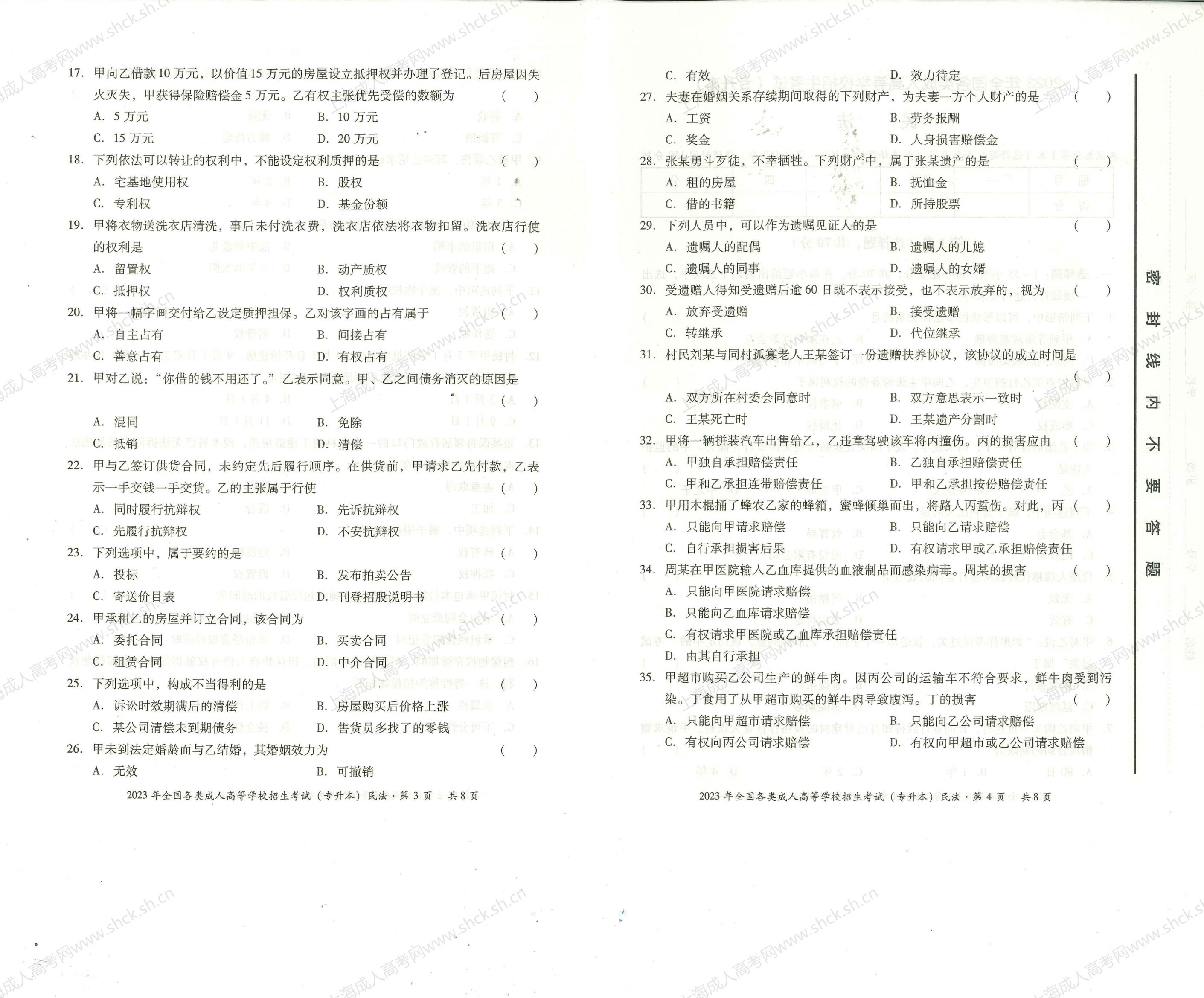 本文标签:上海成考 民法 2023年上海成人高考专升本考试科目《民法》真题