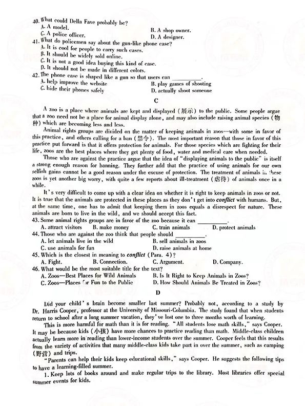本文标签:上海成考 英语 2021年上海成人高考高起点《英语》考试真题及答案