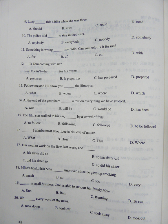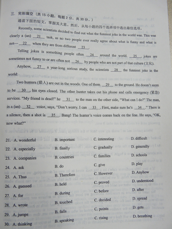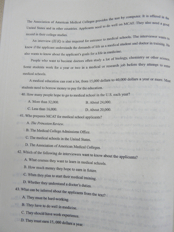 本文标签:上海成考 英语 2012成人高考试题及答案—英语试卷(高中起点)