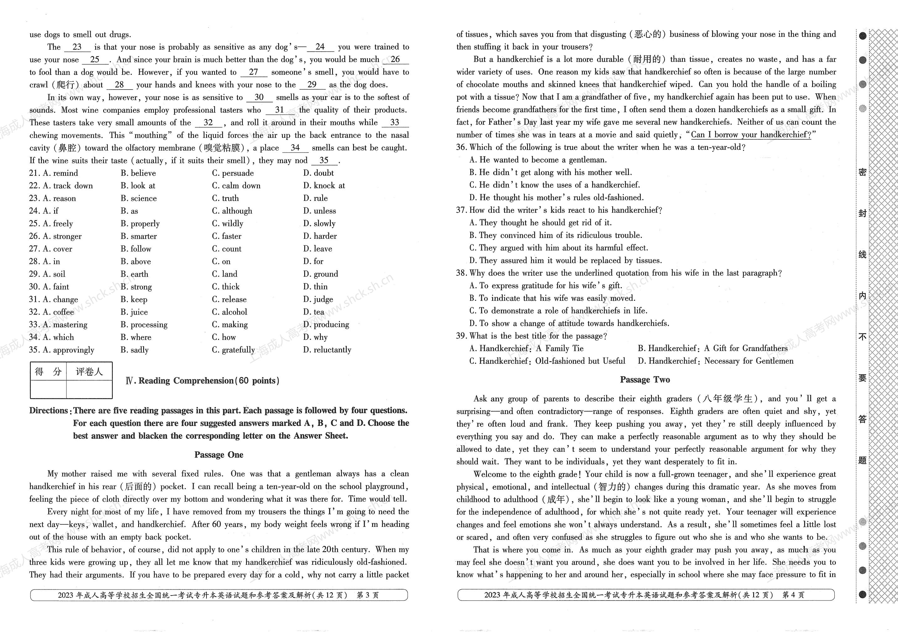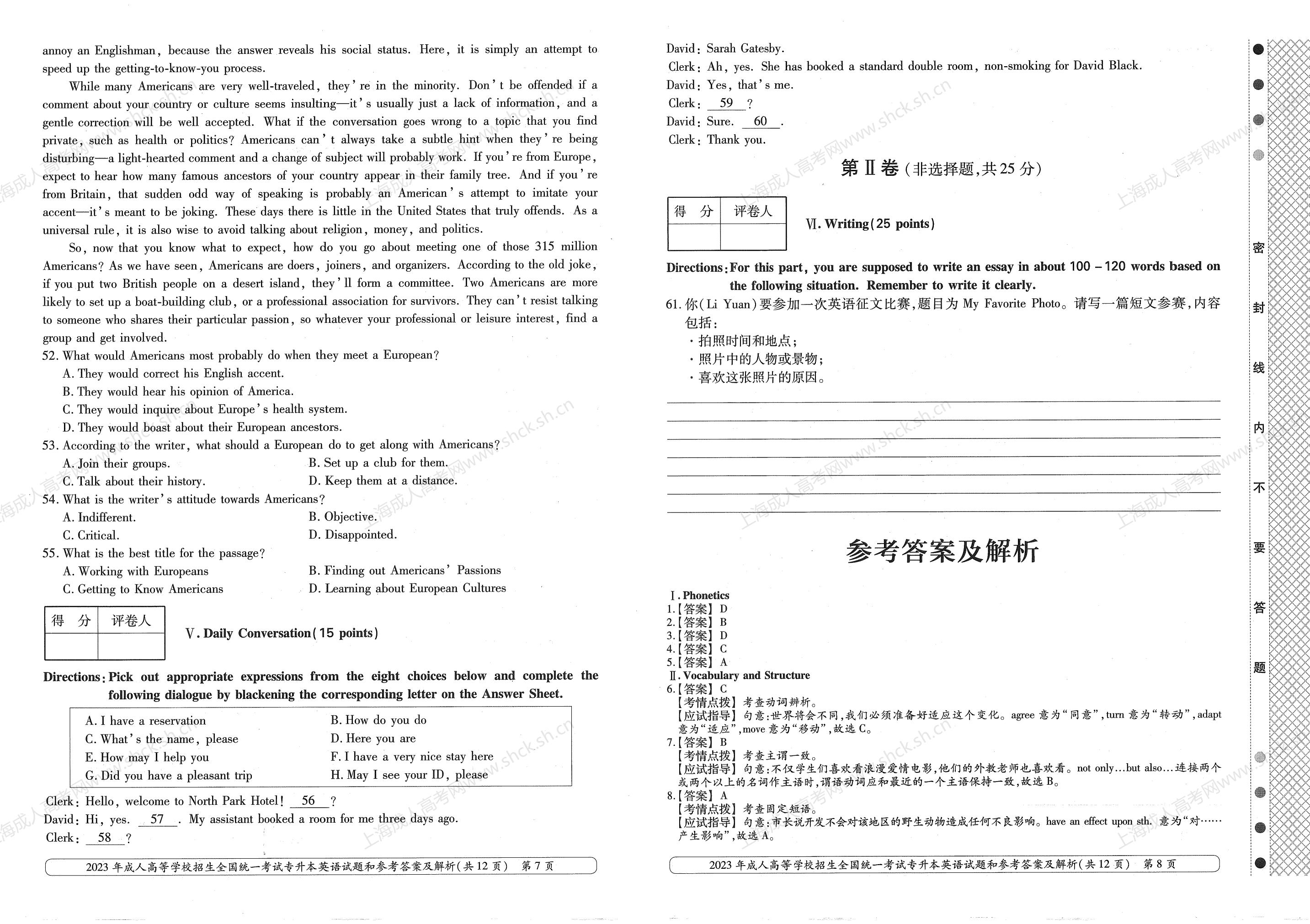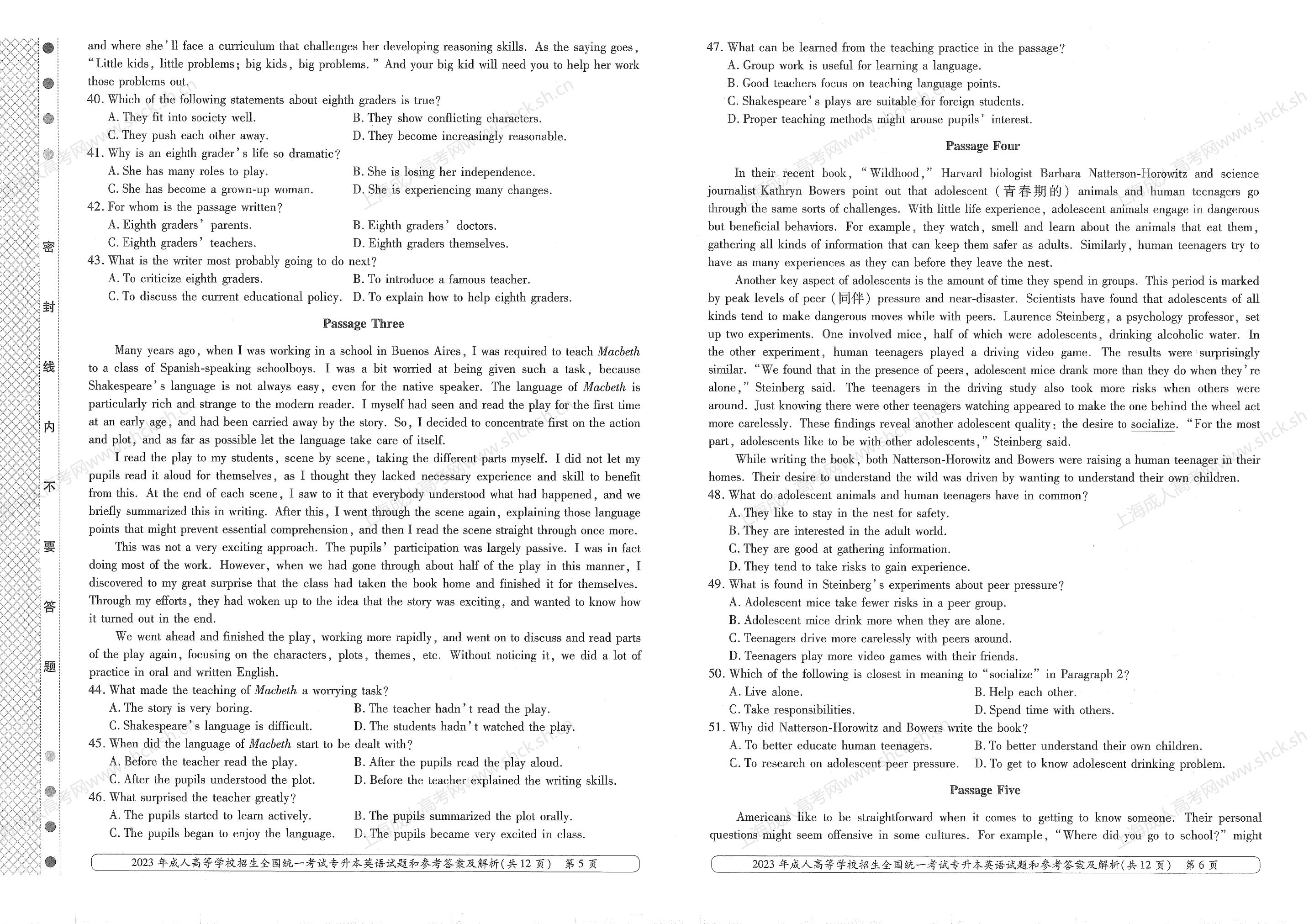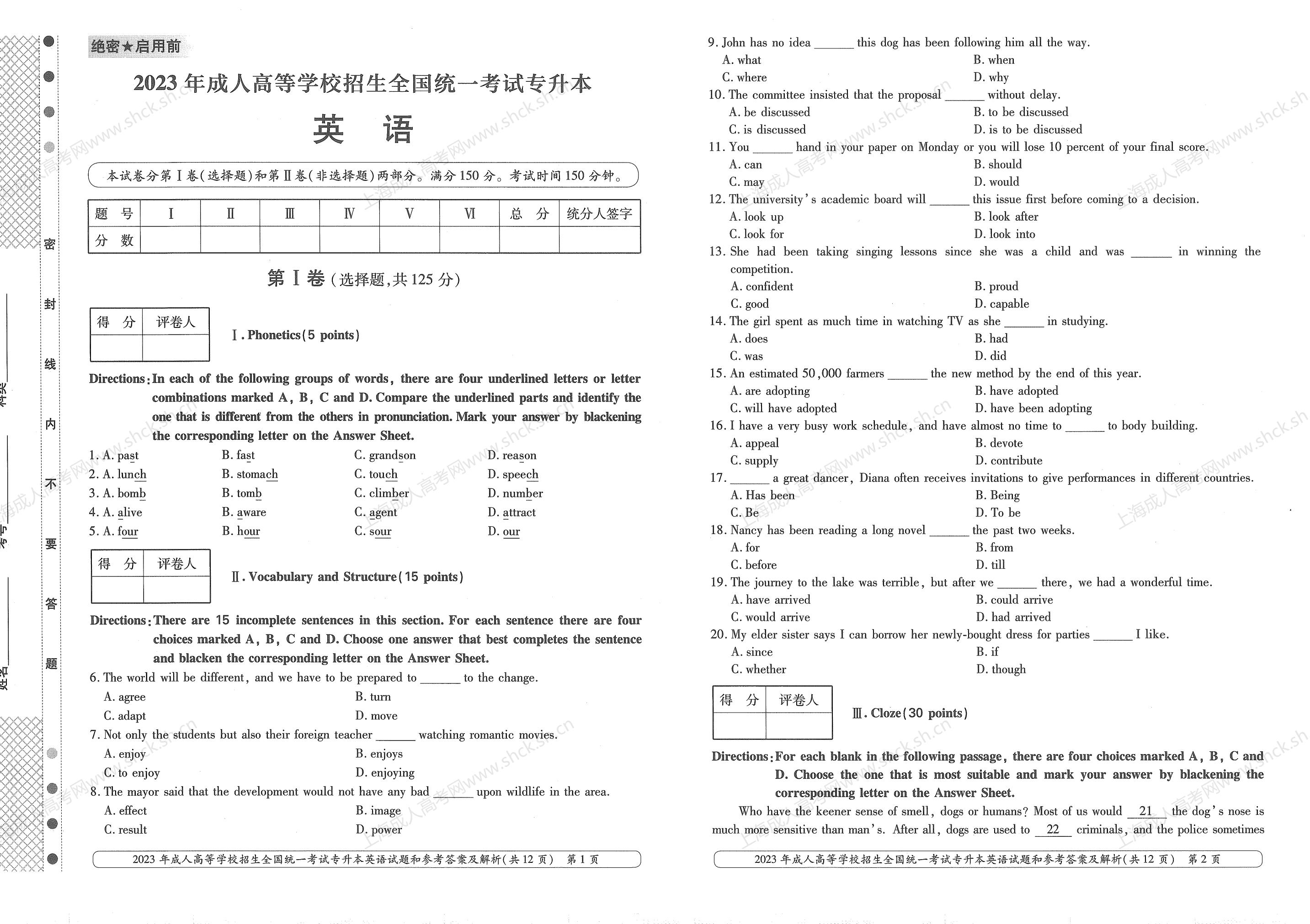 本文标签:上海成考 英语 2023年上海成人高考专升本考试科目《英语》真题
