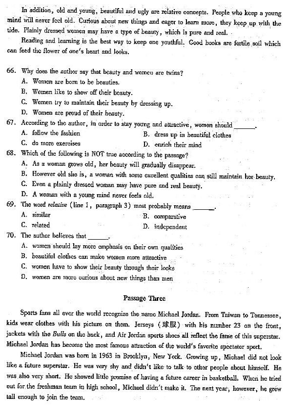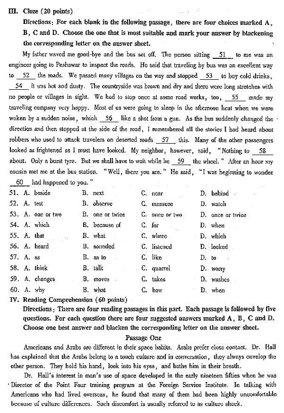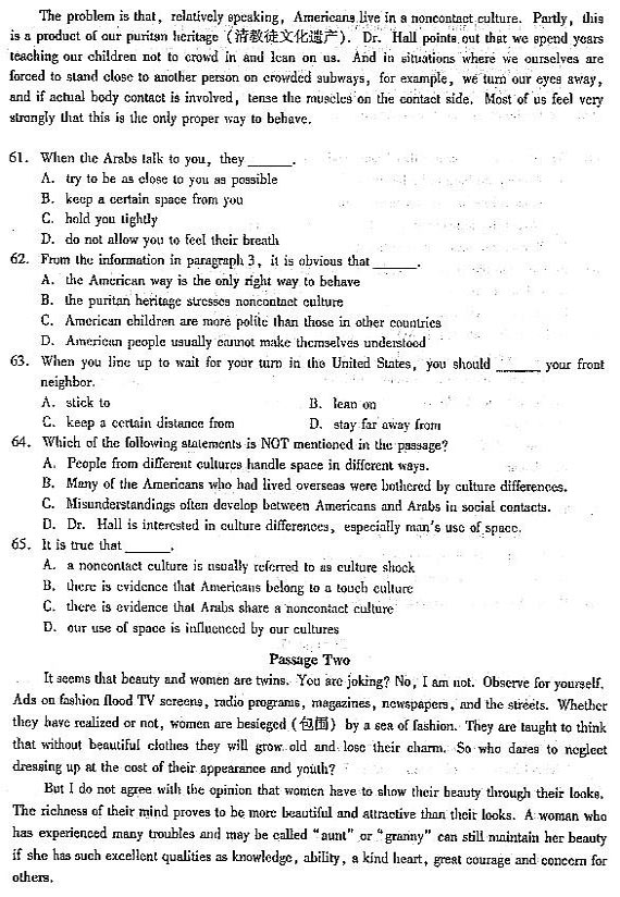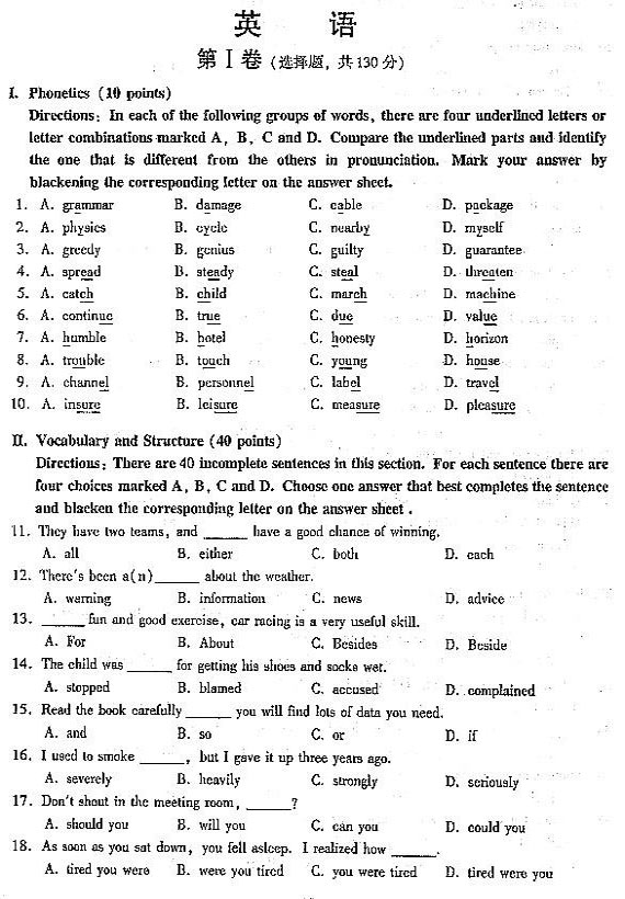 本文标签:上海成考 英语 2004年成人高考专升本大学英语试题及答案
