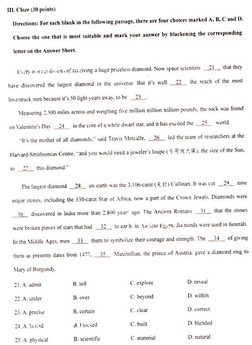 本文标签:上海成考 英语 2009成人高考专升本《英语》真题及答案