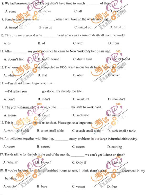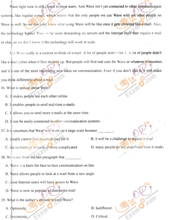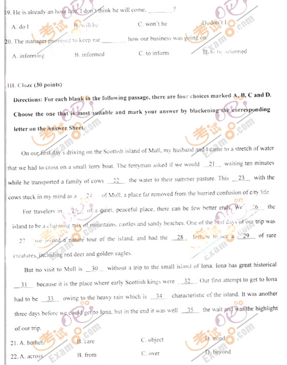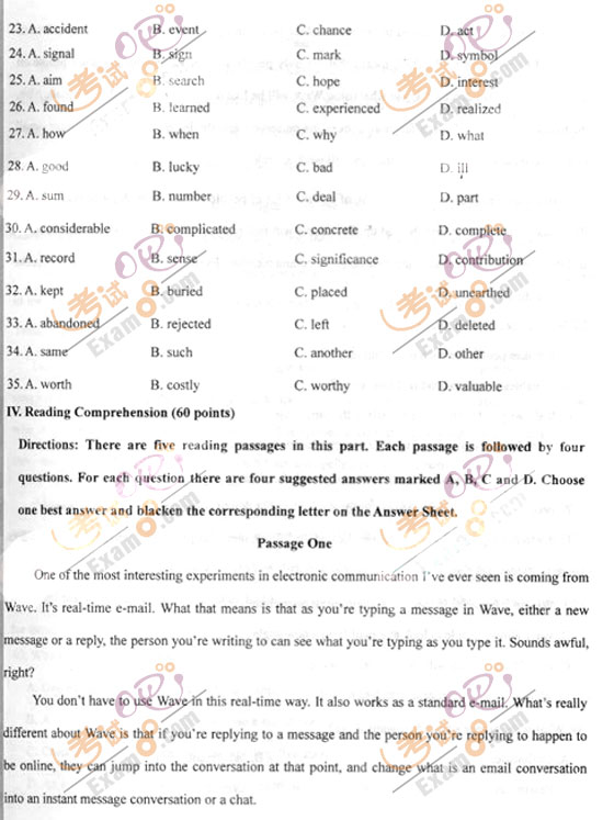 本文标签:上海成考 英语 2010成人高考专升本英语试题及答案