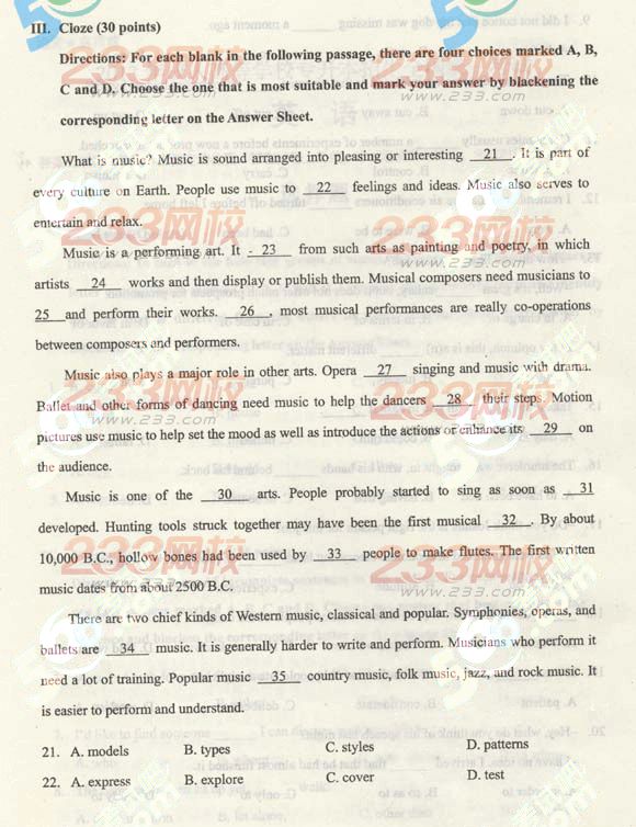 本文标签:上海成考 英语 2013年成人高考专升本英语真题及答案(标准版)
