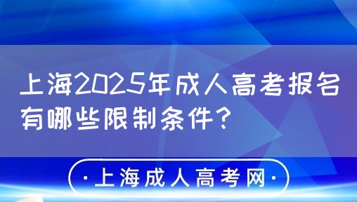 【导读】上海2025年成人高考报名有哪些限制条件?很多同学对于这个问题不太清楚,那么上海成考网为大家整理了相关内容,一起来看看吧!