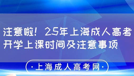 【导读】在成人教育领域,成人高考一直是众多在职人士提升学历的重要途径。对于2025年报考上海成人高考并即将入学的考生来说,了解开学上课时间及相关注意事项至关重要。本文将依据最新官网政策资讯,为大家详细介绍相关内容。
