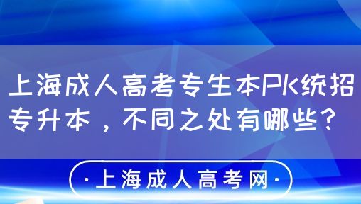 【导读】在提升学历的道路上,专升本是许多专科生的选择。而专升本又有上海成人高考专生本和统招专升本这两种常见途径。那么,它们之间的不同之处有哪些呢?下面将为大家详细分析。